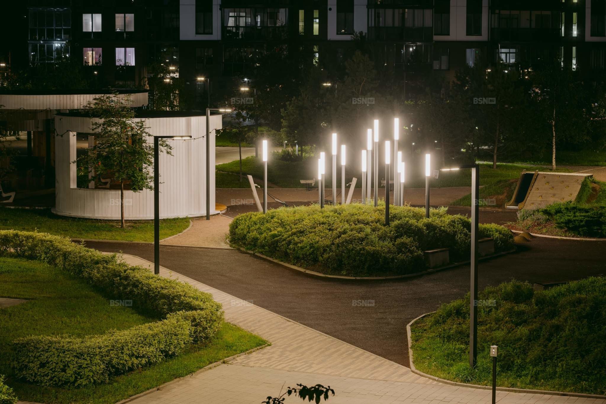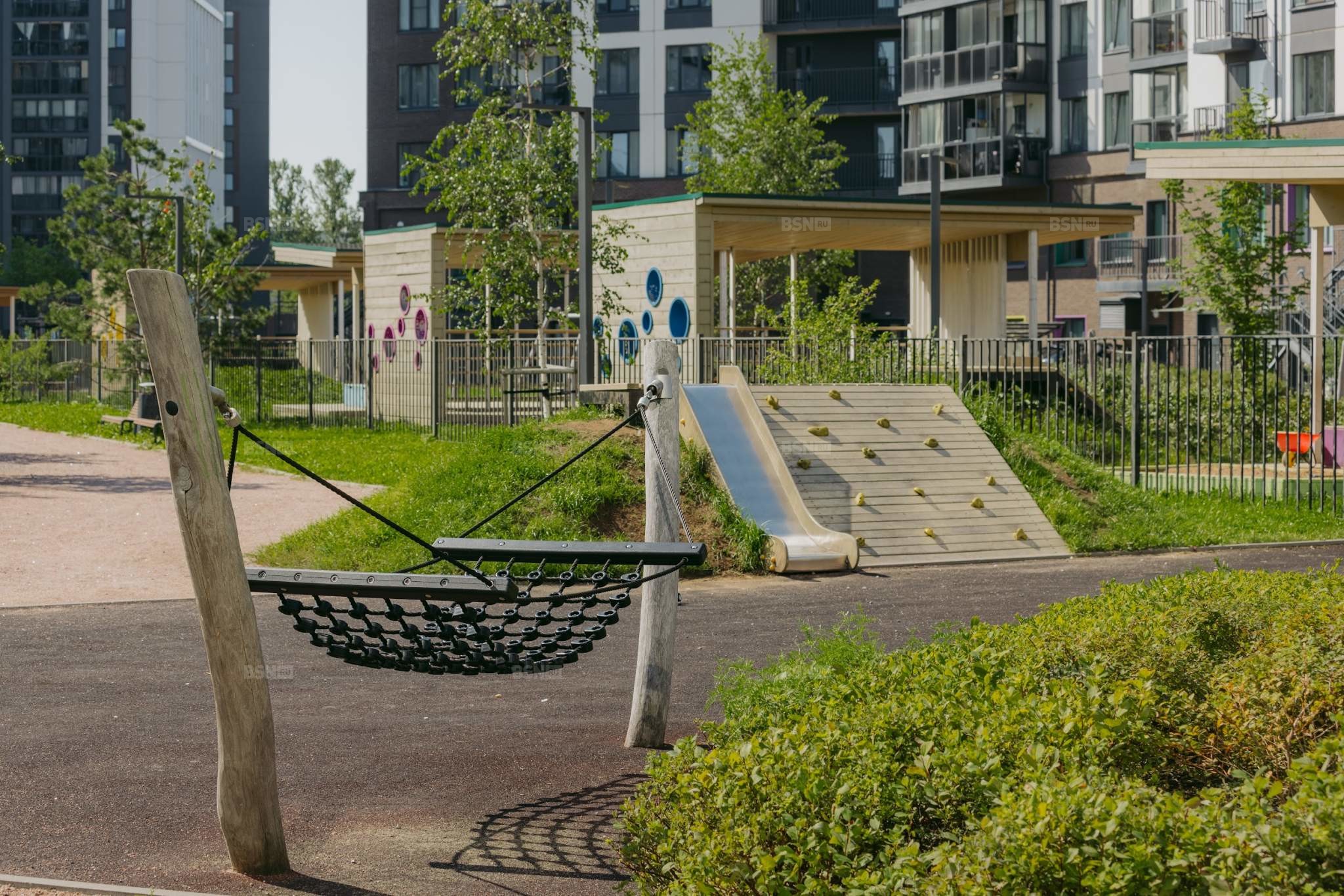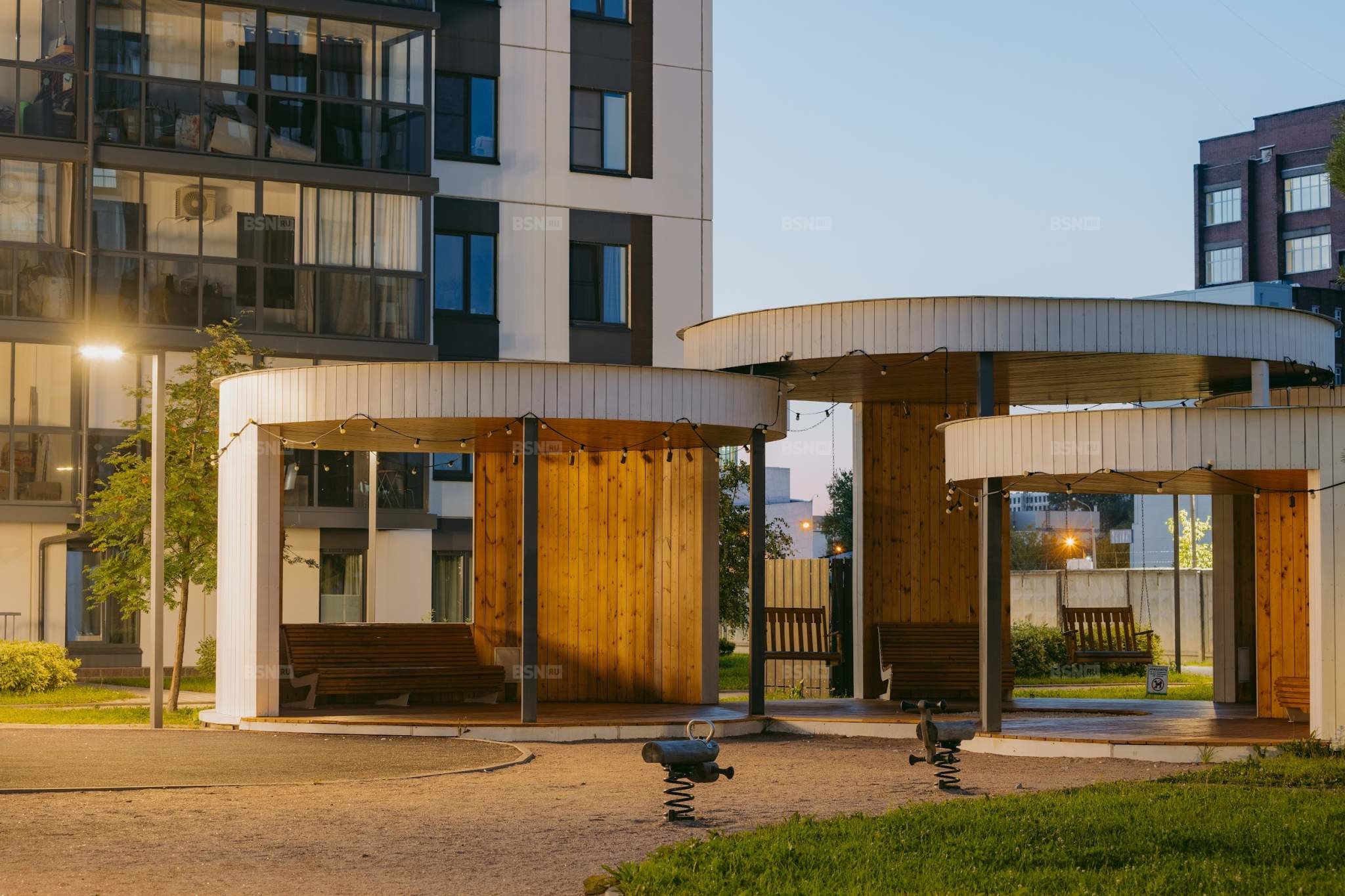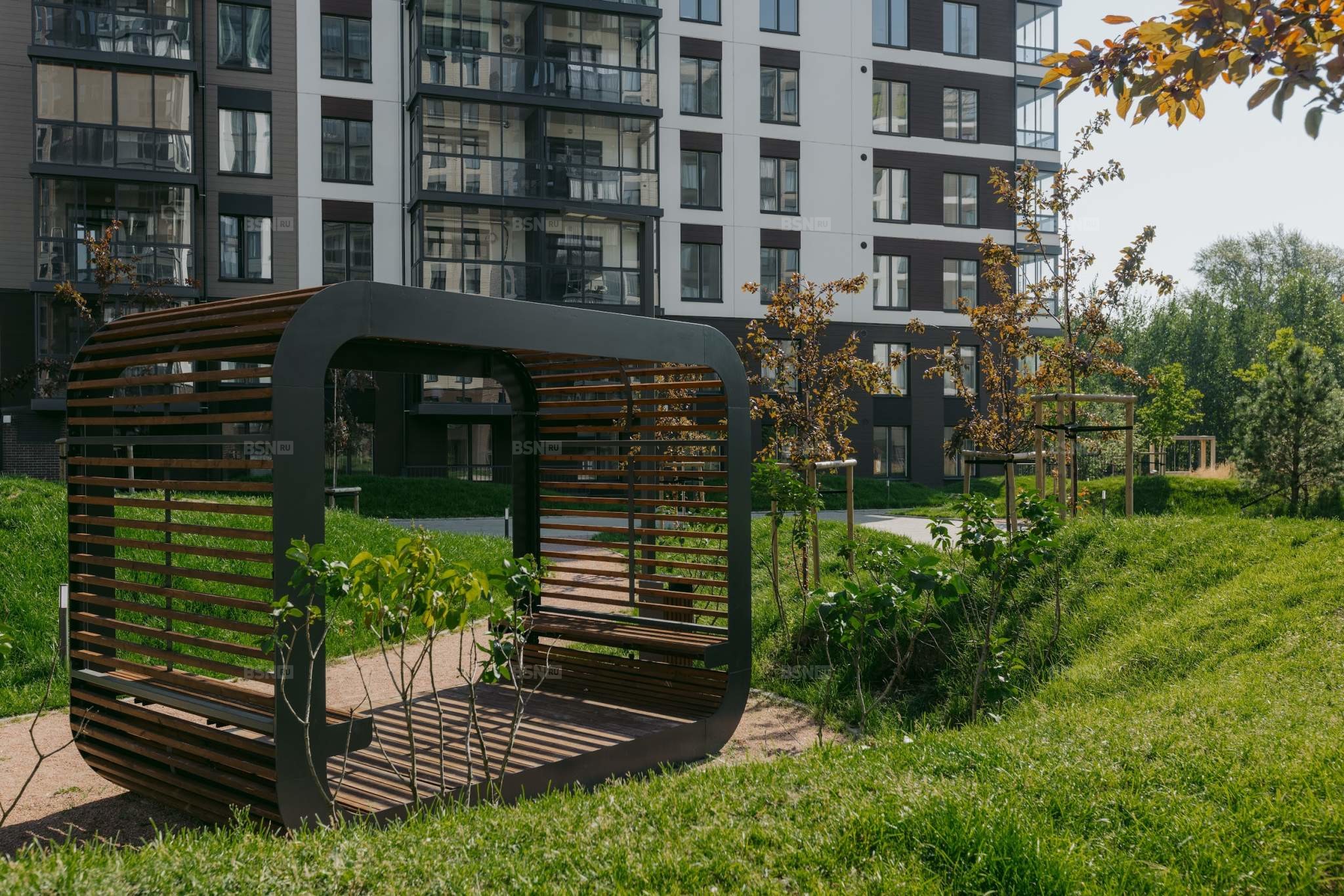 Дворы Magnifika – это обилие зелени, взрослые деревья, зелёные холмы, разноуровневое освещение и природные материалы. Пространство закрыто от случайных прохожих и включает в себя места для отдыха, общения и прогулок. Приезжаете посмотреть своими глазами – и вы будете приятно удивлены вниманию к деталям и качеству исполнению.