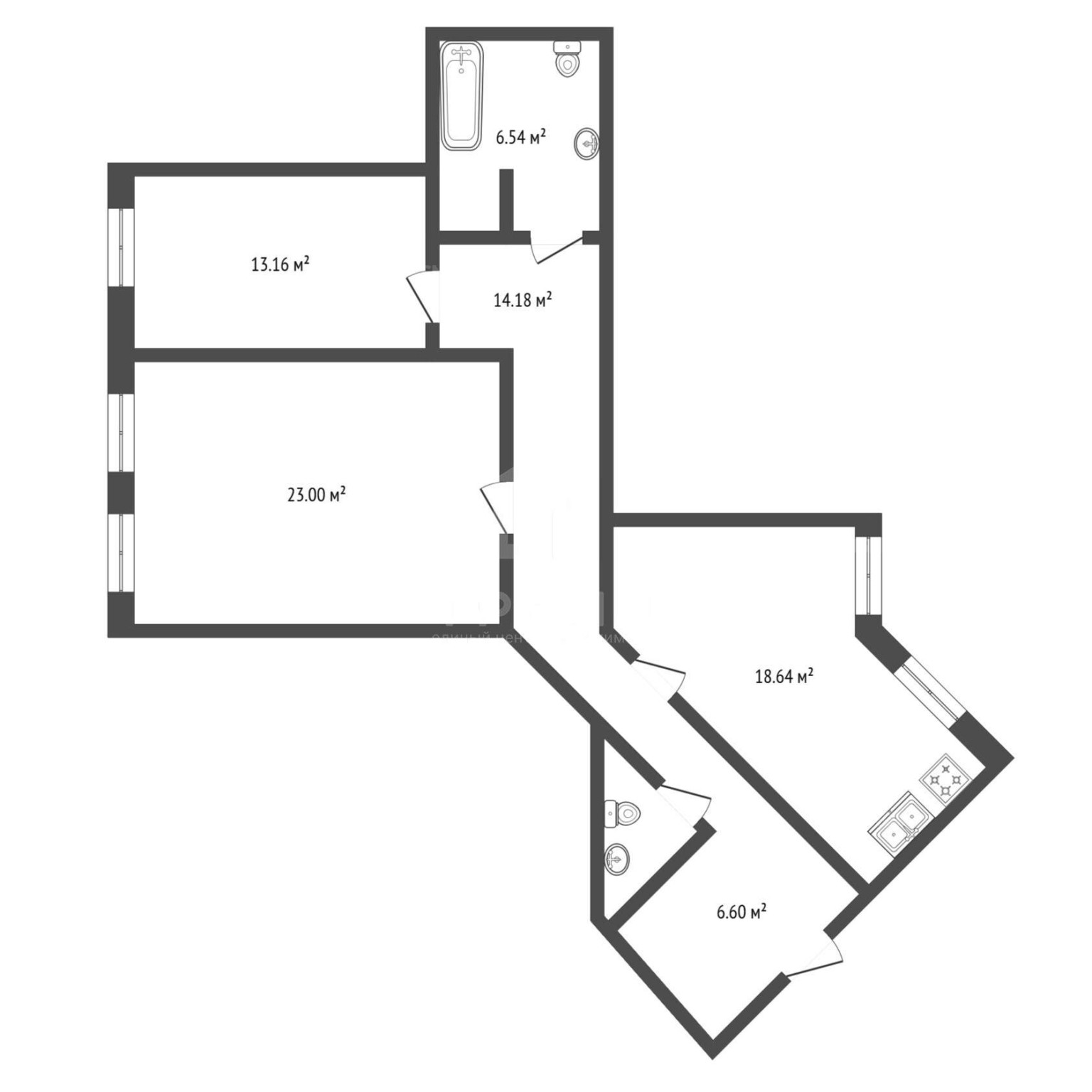 Просторная кухня 18,6 м - сердце дома для вдохновенных вечеров2 изолированные комнаты (36,1 м жилой площади) - уединение и комфортЖелезобетонные перекрытия