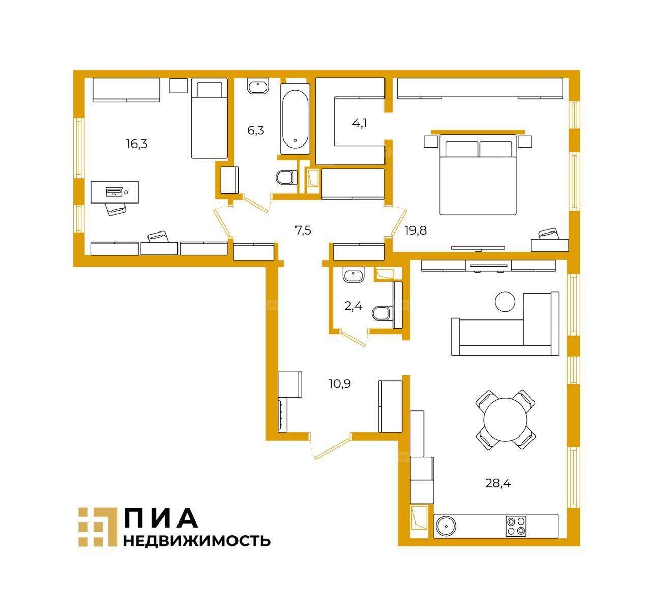 Общая площадь квартиры - 95,10 м.