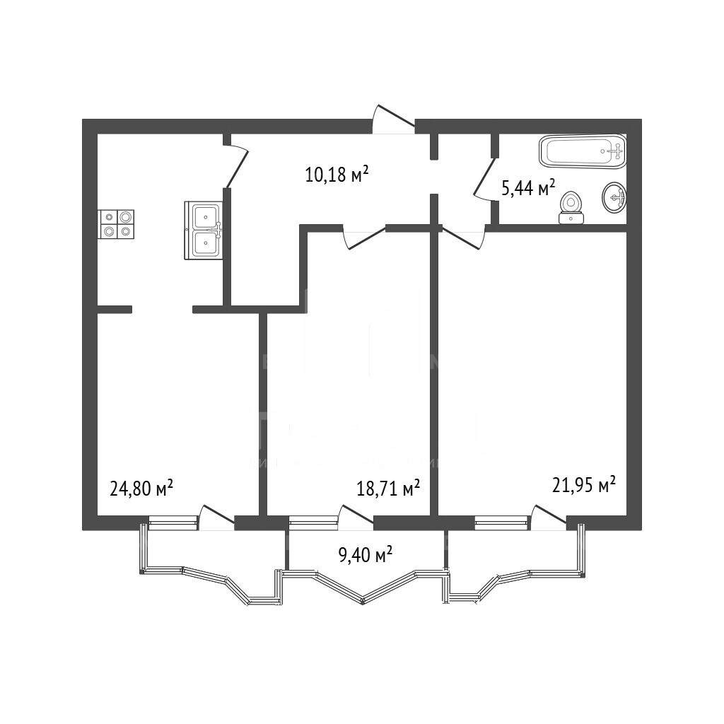 Жилое пространство площадью 40,66 кв. м разделено на две изолированные комнаты, что обеспечивает удобство и уединение. Кухня площадью 24,8 кв. м идеально подходит для приготовления любимых блюд и семейных ужинов. В квартире выполнен ремонт со стяжкой и штукатуркой, что даёт возможность новым владельцам воплотить свои дизайнерские идеи.