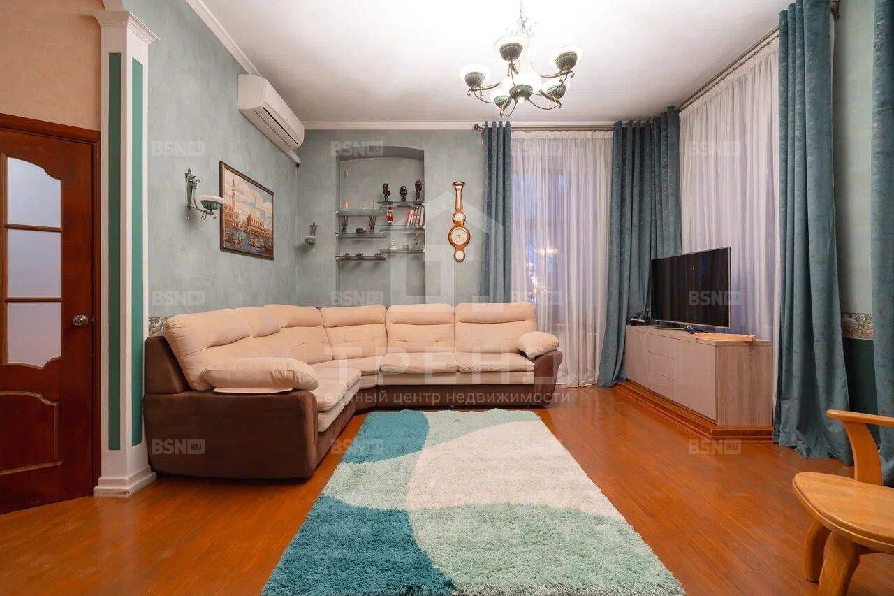 Квартира расположена на втором этаже трёхэтажного кирпичного дома 1917 года постройки. Высота потолков 3,75 метра создаёт ощущение простора и свободы. Общая площадь квартиры составляет 84,6 кв. м, из которых 65 кв. м - жилая площадь. Три изолированные комнаты, кухня площадью 20 кв. м - идеальное пространство для комфортной жизни.