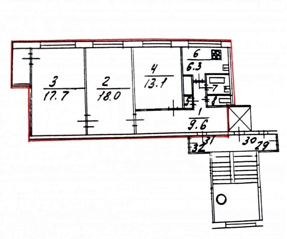 Продаётся трёхкомнатная квартира площадью 68,1 кв. м.