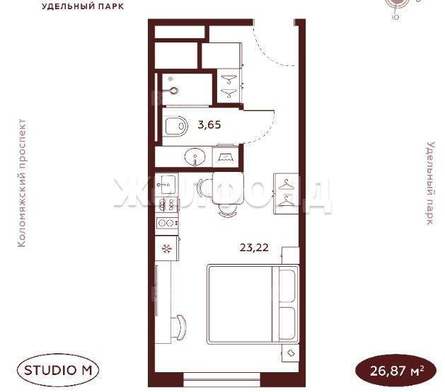 1 комн. квартира по ул. Коломяжский проспект. Общей площадью: 26.87 кв.м. Студия-апартаменты мечты