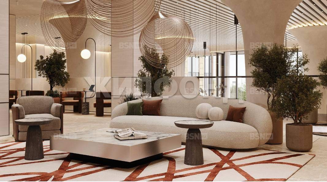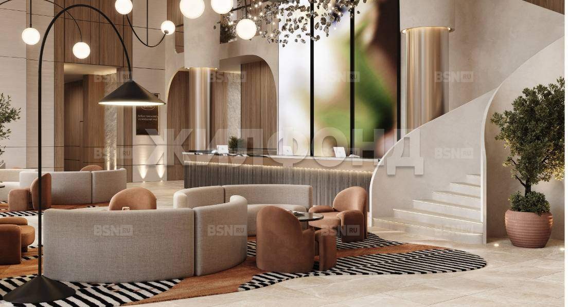 Клубная инфраструктура- центральное лобби, лаунж, фитнес-центр, кинозал, коворкинг, общая гостиная с террасой, детская зона, студия звукозаписи, игровая VR-комната.