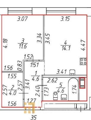 Площадь38.9 м2