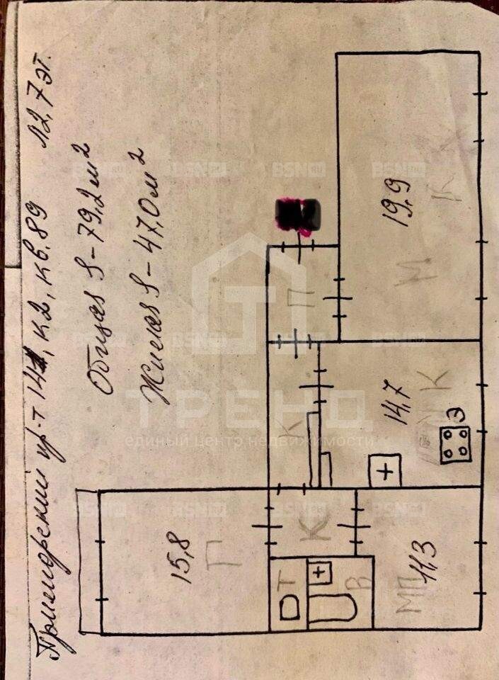 - Жилая площадь: 47 кв. м.
