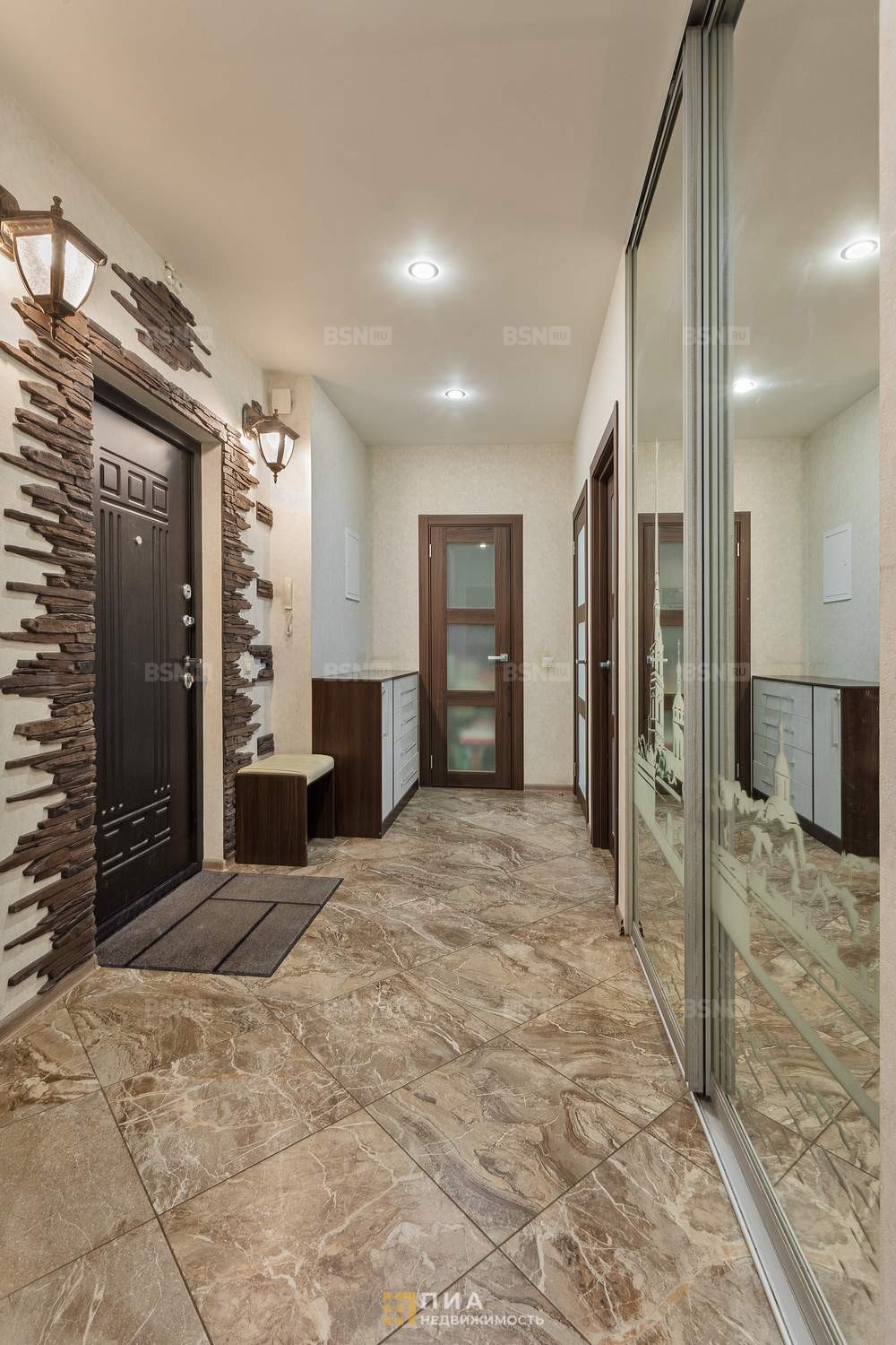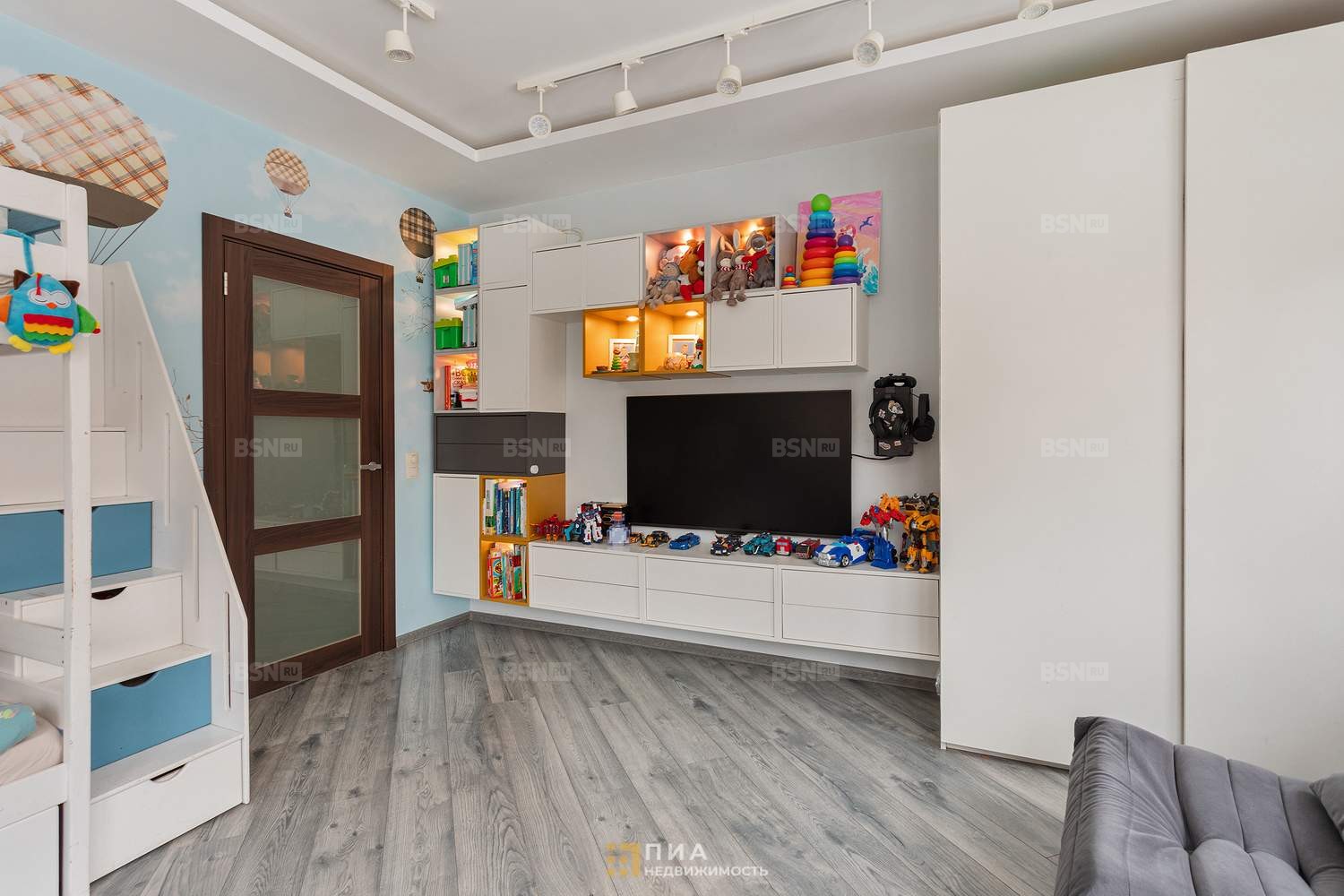 Отдельная гардеробная-кладовая 2,8 м + два встроенных шкафа. В прихожей (9,7 м) большой зеркальный шкаф с подсветкой и изображением Петропавловской крепости. Все встроенные шкафы остаются.