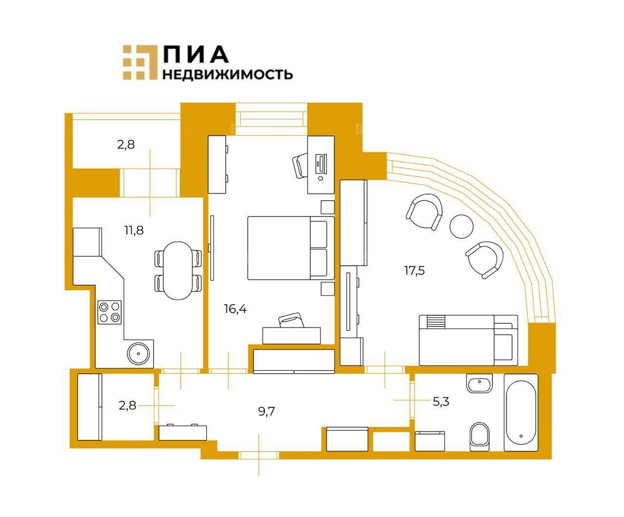 - Кухня 11,8 м