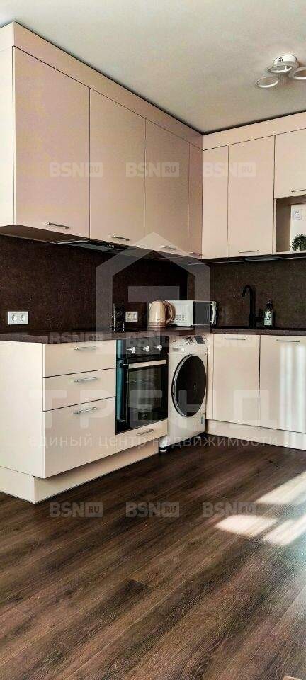 Полная комплектация: вся современная техника (варочная панель, духовка, посудомойка, холодильник, стиральная машина, микроволновка) и вся мебель, что на фото, - остаётся новым хозяевам.