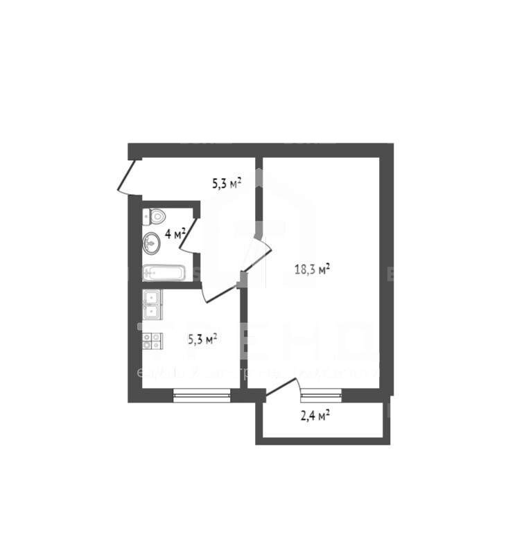 Простор 31,2 м с отдельной комнатой 18,3 м