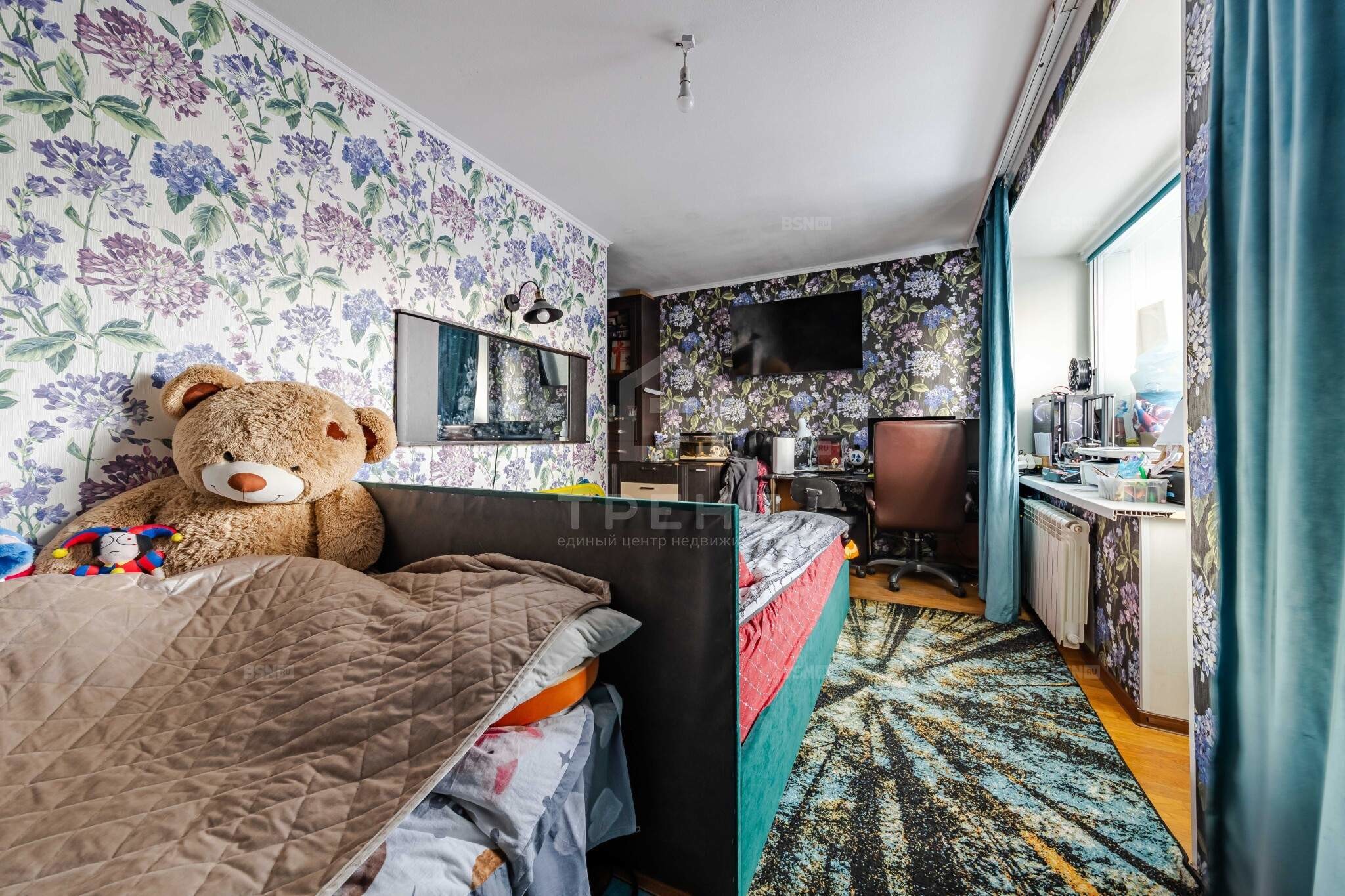 В квартире произведен качественный ремонт, в ходе ремонта была сделана перепланировка - объединена кухня и гостиная, площадь которой составляет 18,1 кв.м. В одной из комнат большая лоджия, площадь комнаты- 16,7 кв.м. Вторая комната площадью 10,2 кв.м. Установлены полноразмерные стеклопакеты, заменены радиаторы отопления, установлен кондиционер.