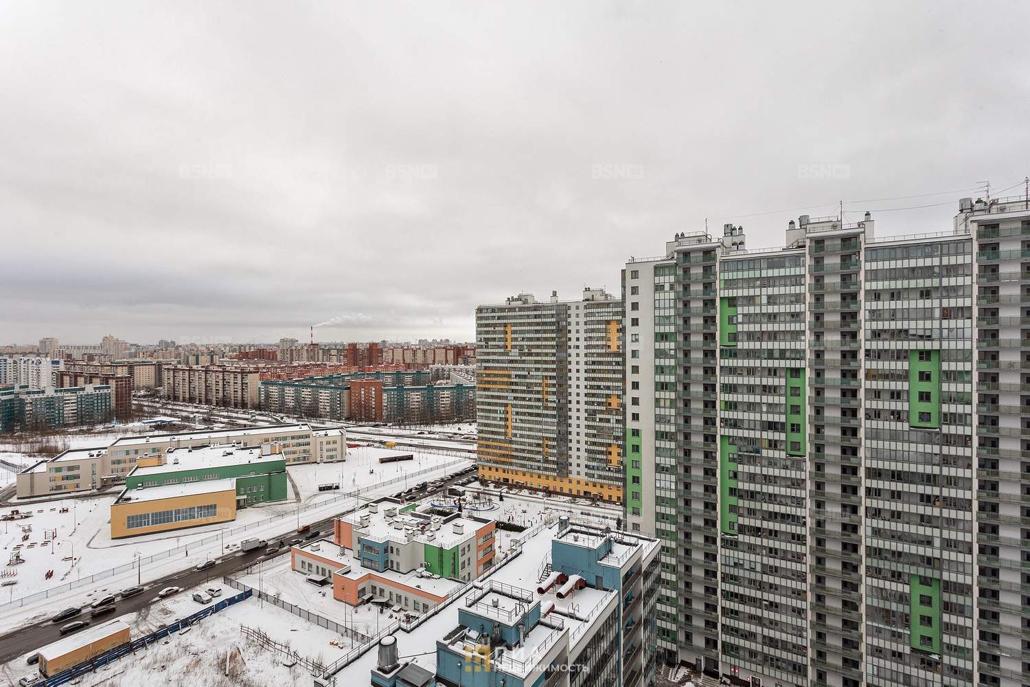 До станции метро "Комендантский проспект" 8минут на транспорте. Удобный выезд на КАД.