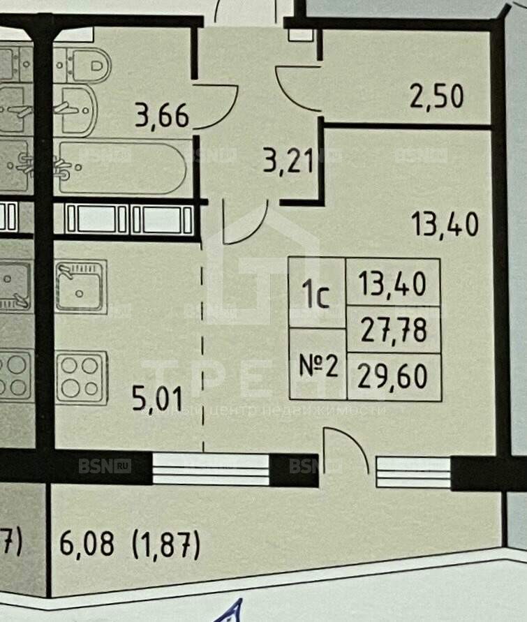 Возможность изолировать кухню (6 кв. м) и комнату (13 кв. м)