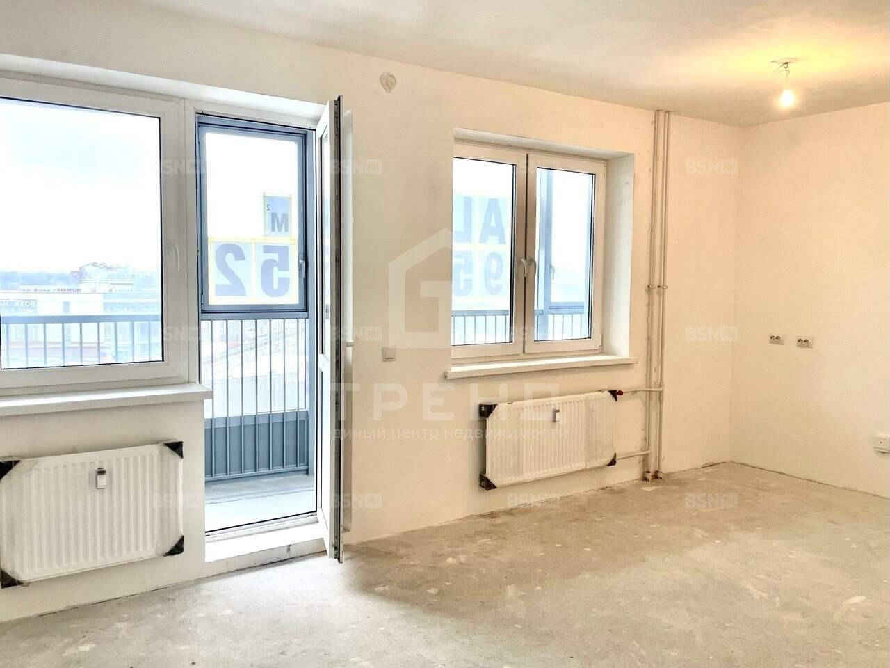 Два окна в кухонной и жилой зоне, выходящие на юго-запад