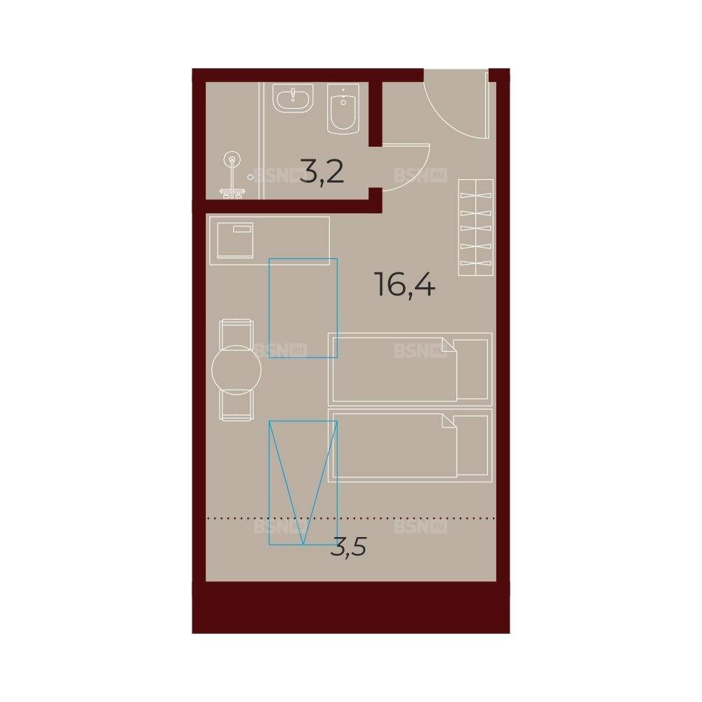 - Формат: Студия с дизайнерской отделкой