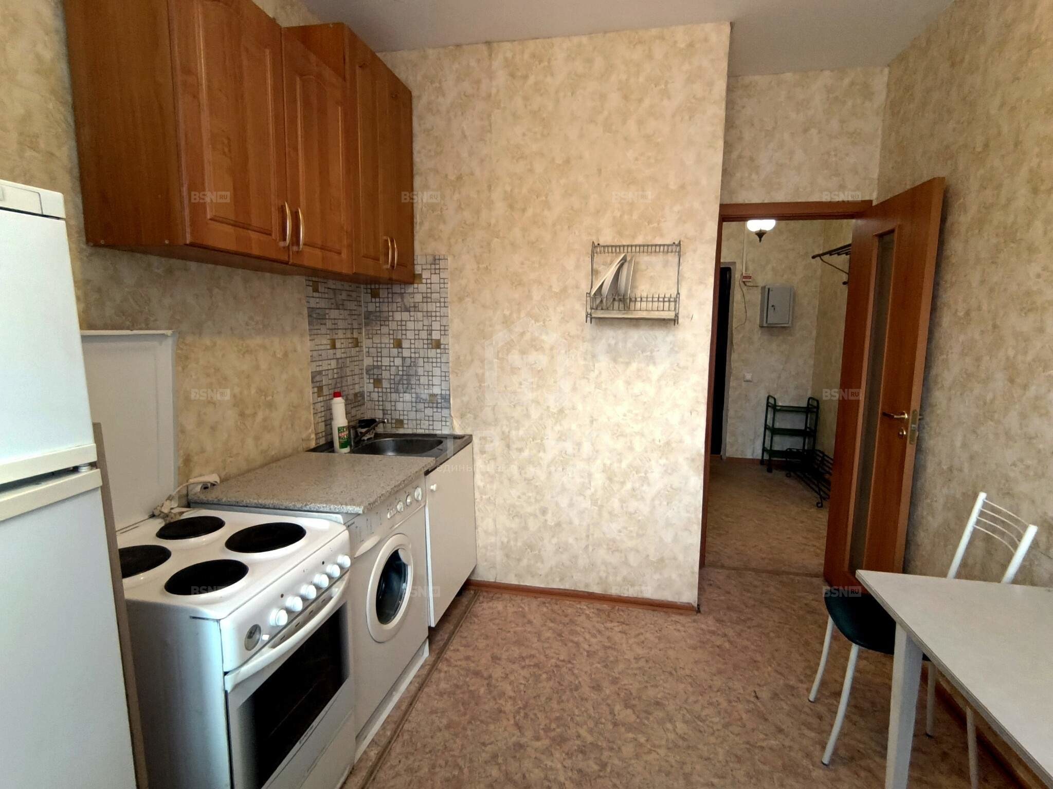 Квартира расположена на первом этаже 16-этажного кирпичного дома, построенного в 2013 году. Общая площадь - 32,7 кв. м, высота потолков - 2,8 м. Жилая площадь составляет 17 кв. м, площадь кухни - 7,6 кв. м.