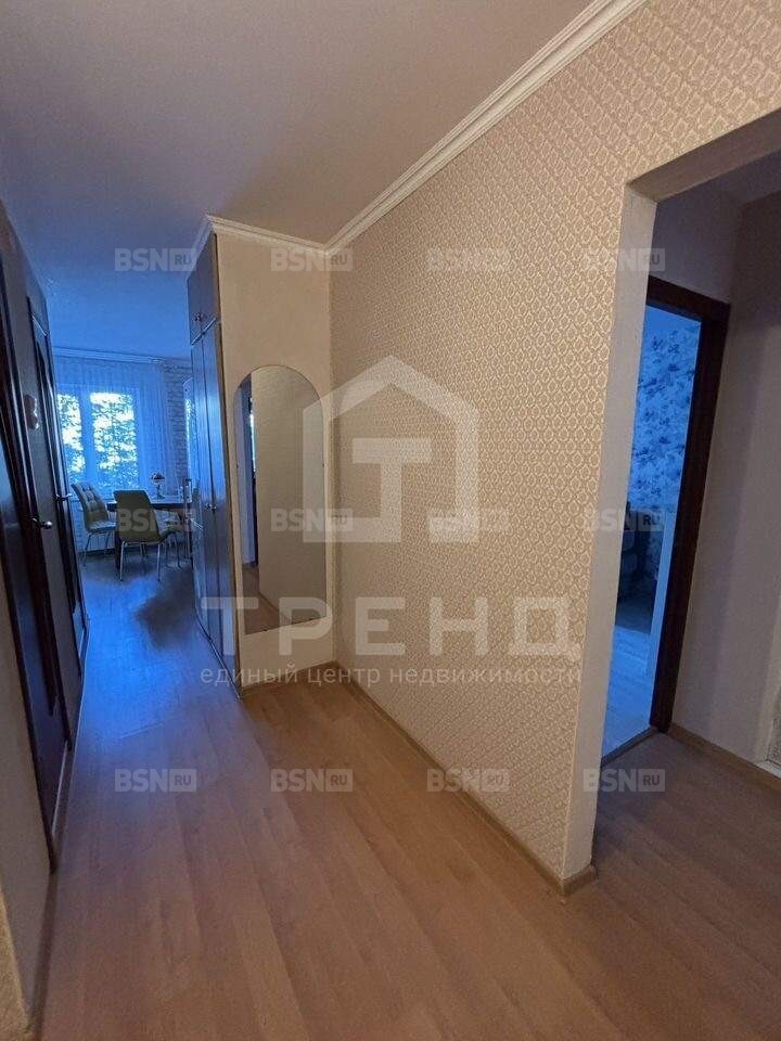 Общая площадь составляет 54,4 кв. м, из которых 29,6 кв. м - жилая площадь. Две изолированные комнаты с площадью 16,9 кв. м и 12,7 кв. м, а также кухня площадью 8,5 кв. м обеспечивают достаточное пространство для жизни и отдыха. Квартира двухсторонняя, окна выходят на обе стороны.