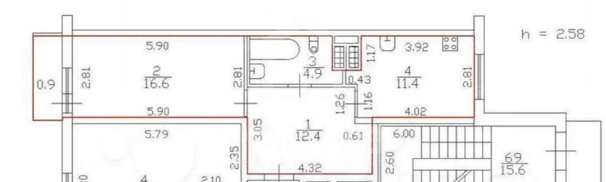 Основные характеристики: - Год постройки: Материал постройки: монолитный - Общая площадь: 45,3 кв. м - Жилая площадь: 16,6 кв. м - Площадь кухни: 11,4 кв. м - Высота потолков: 2,58 м - Ремонт: евро - Этаж: 17 из 24