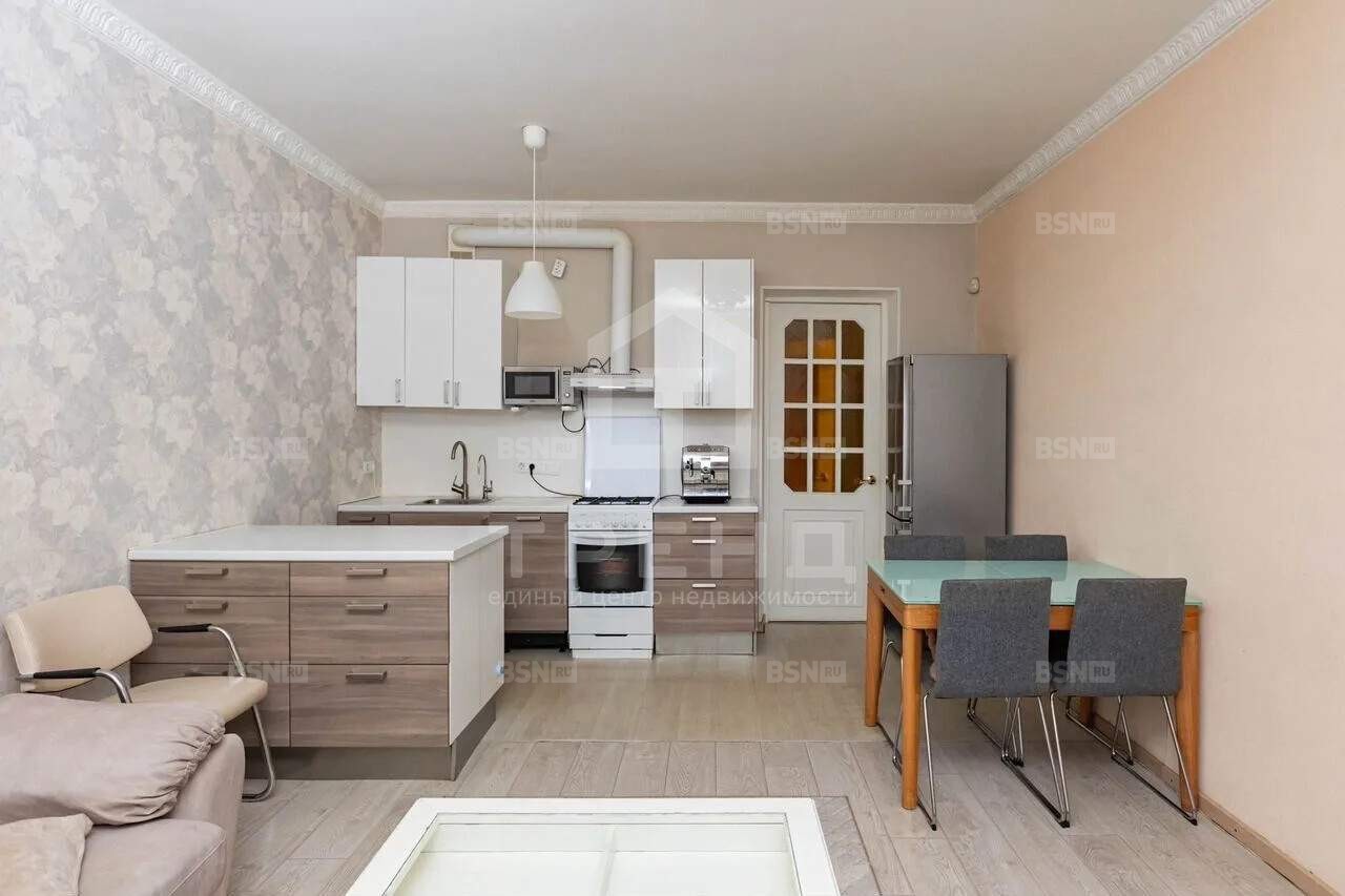 Общая площадь квартиры - 73,4 кв. м, площадь кухни - 20,2 кв. м. Высота потолков - 3 метра . Окна выходят на улицу и во двор. Планировка позволяет эффективно использовать пространство.