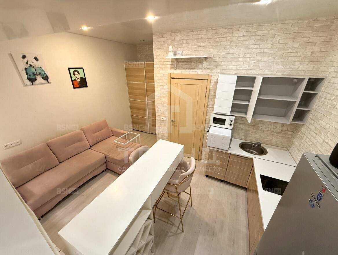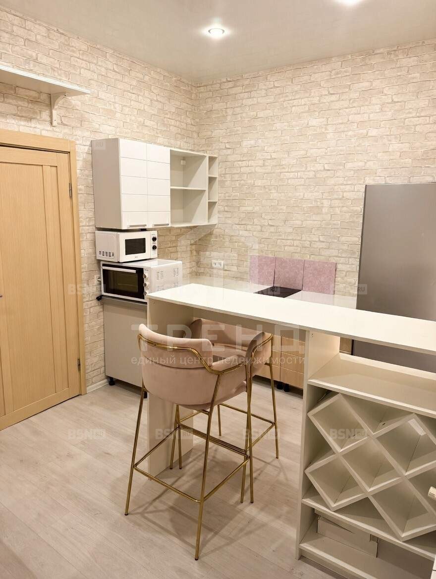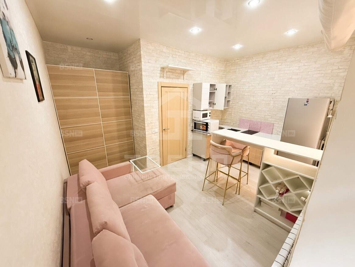 Здесь всё с характером и настроением: розовая пудра в деталях, розовый диван, барные стулья, посуда - квартира с атмосферой, которую невозможно спутать с типовыми вариантами.
