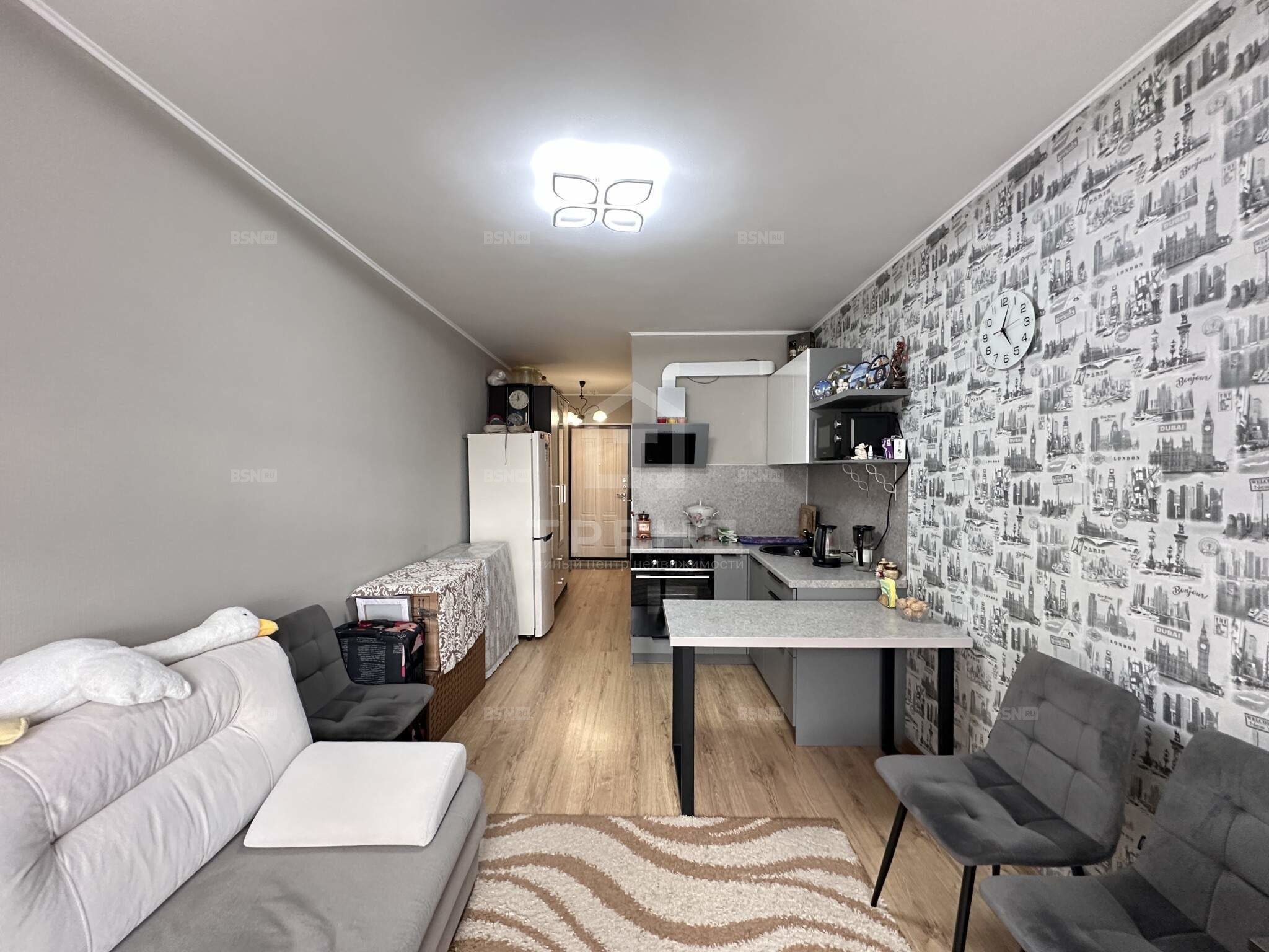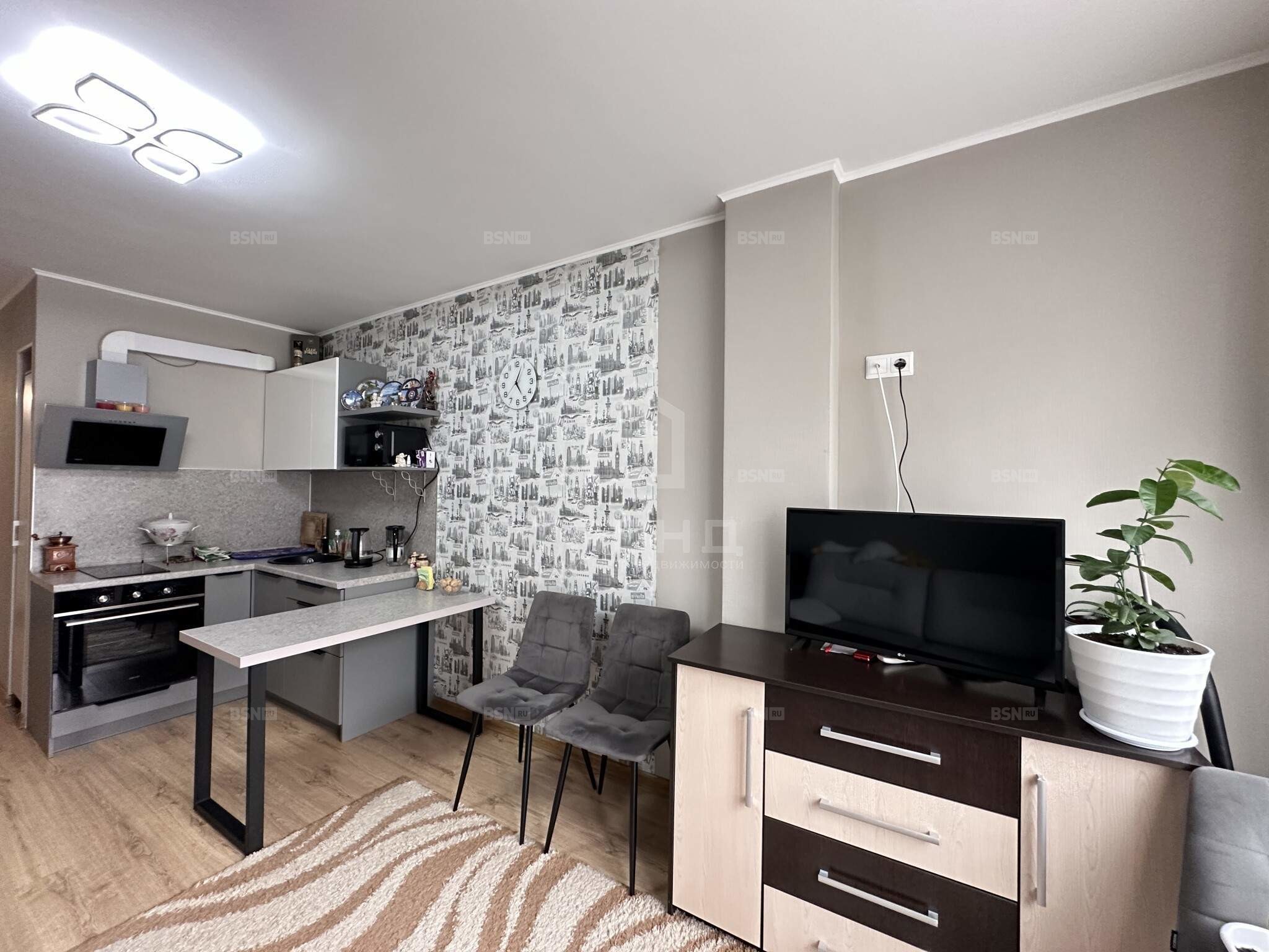 Общая площадь составляет 24.1 кв. м, что позволяет комфортно разместиться одному человеку или молодой паре. Высота потолков - 2.58 метра, окна выходят на улицу, поэтому в квартире всегда много света. Пространство организовано максимально удобно, с учетом всех современных требований к комфорту и функциональности. Совмещенный санузел оснащен всей необходимой сантехникой.