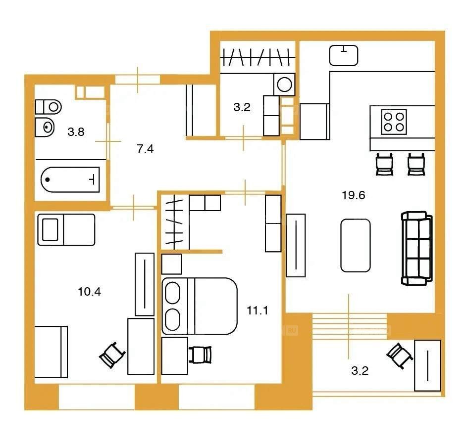 Площадь54.6 м2
