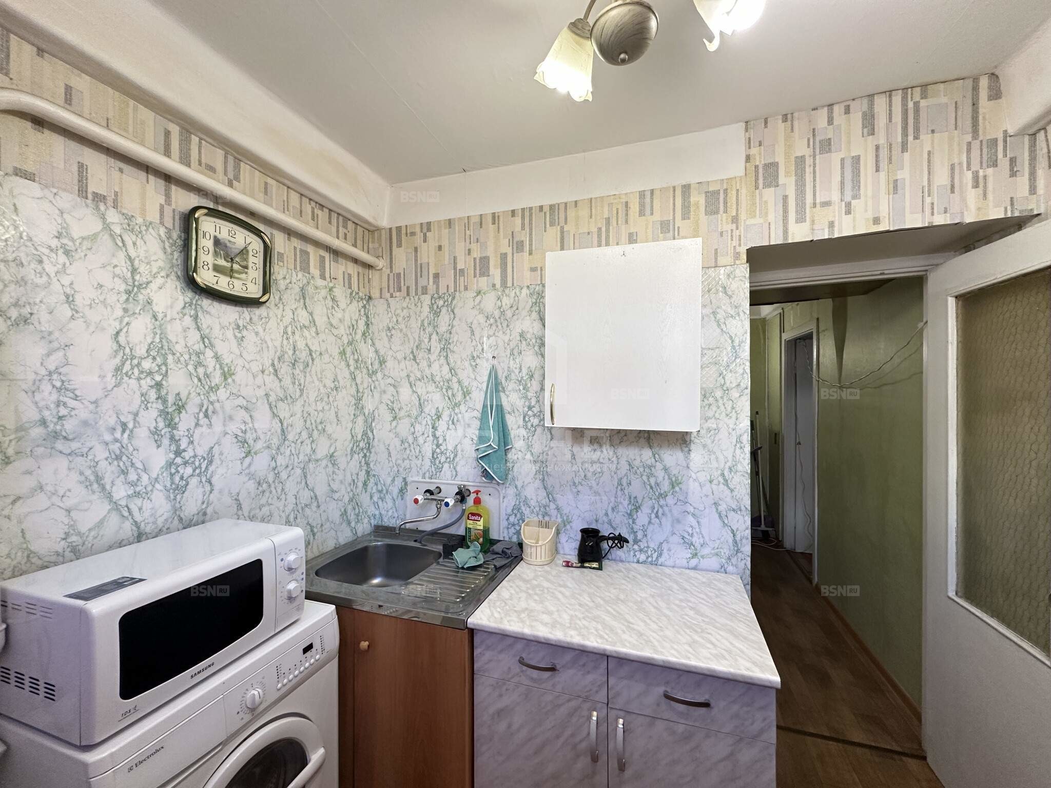 Квартира расположена на первом этаже пятиэтажного панельного дома, построенного в 1965 году. Общая площадь составляет 30,9 кв. м, из которых 17 кв. м - жилая площадь, 5,5 кв. м - кухня. Высота потолков - 2,5 м. Окна выходят на улицу и во двор, комнаты изолированные.