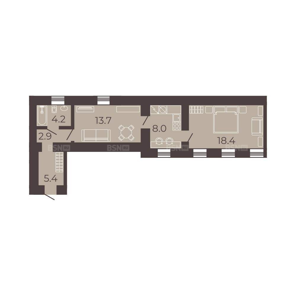 - Площадь: 52,6 м2